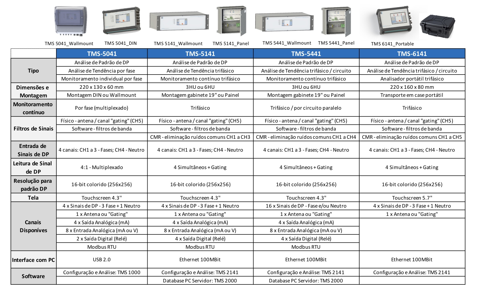 Todos equipamentos possuem visor para análise no próprio equipamento, mas também podem operar em interface com software instalado em notebook ou desktop. Abaixo segue uma relação dos modelos e diferenças entre eles.